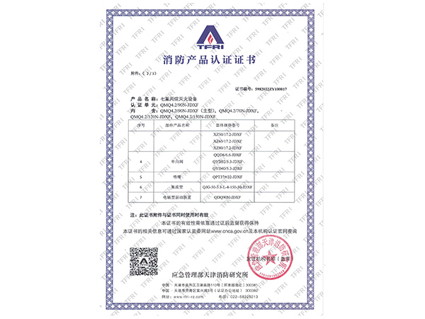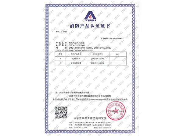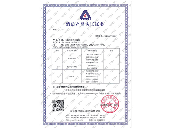 | 滅火劑名稱(chēng) | 七氟丙烷(HFC-227ea) |
