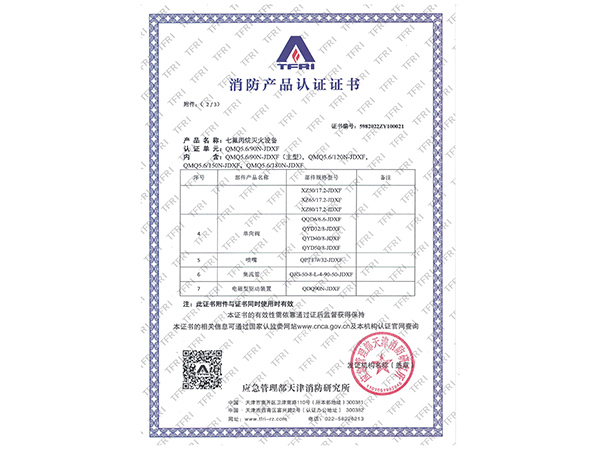 | 滅火劑名稱 | 七氟丙烷(HFC-227ea) |